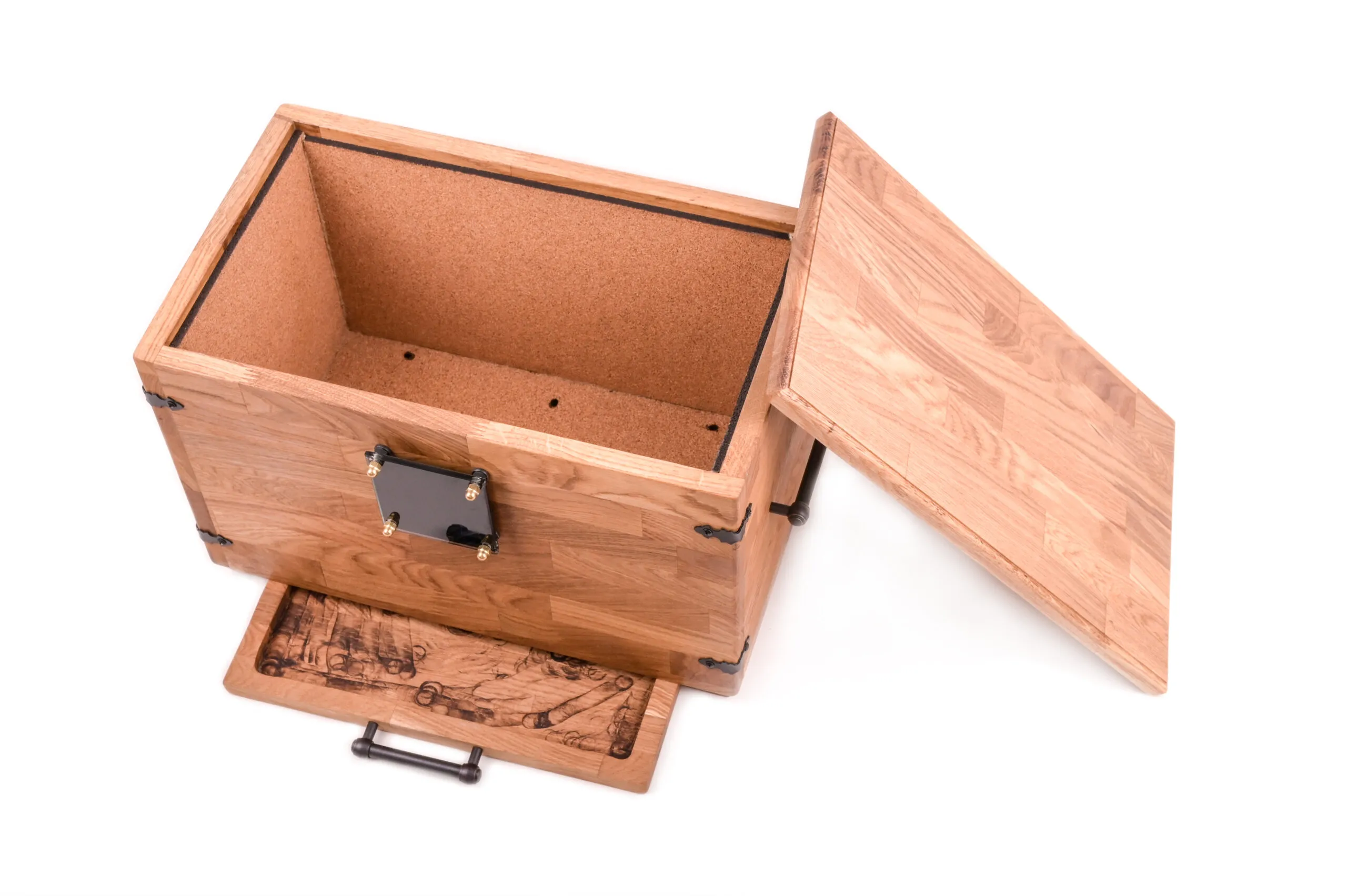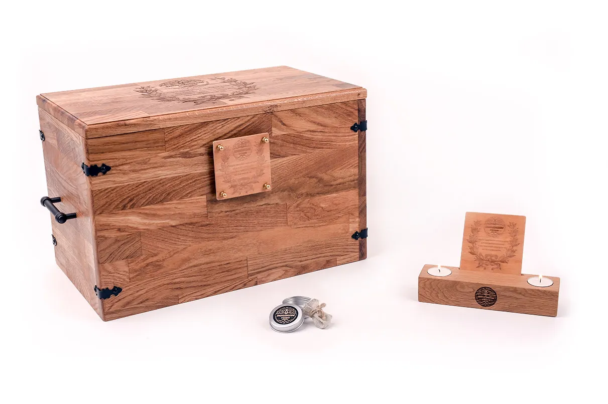 Destička na čele urny má vygravírované jméno a data narození a úmrtí. Urna je vyrobena ručně z kvalitního dubového dřeva, které zaručuje důstojný vzhled a dlouhou životnost.