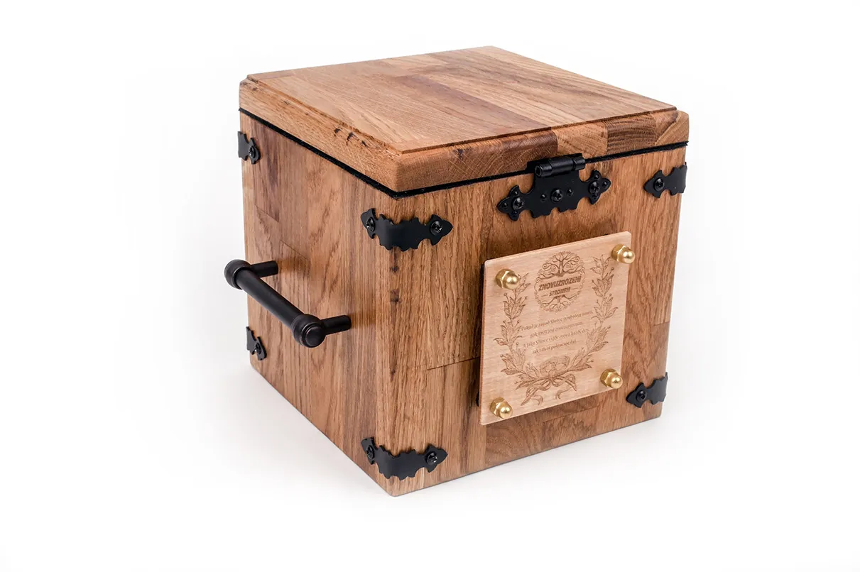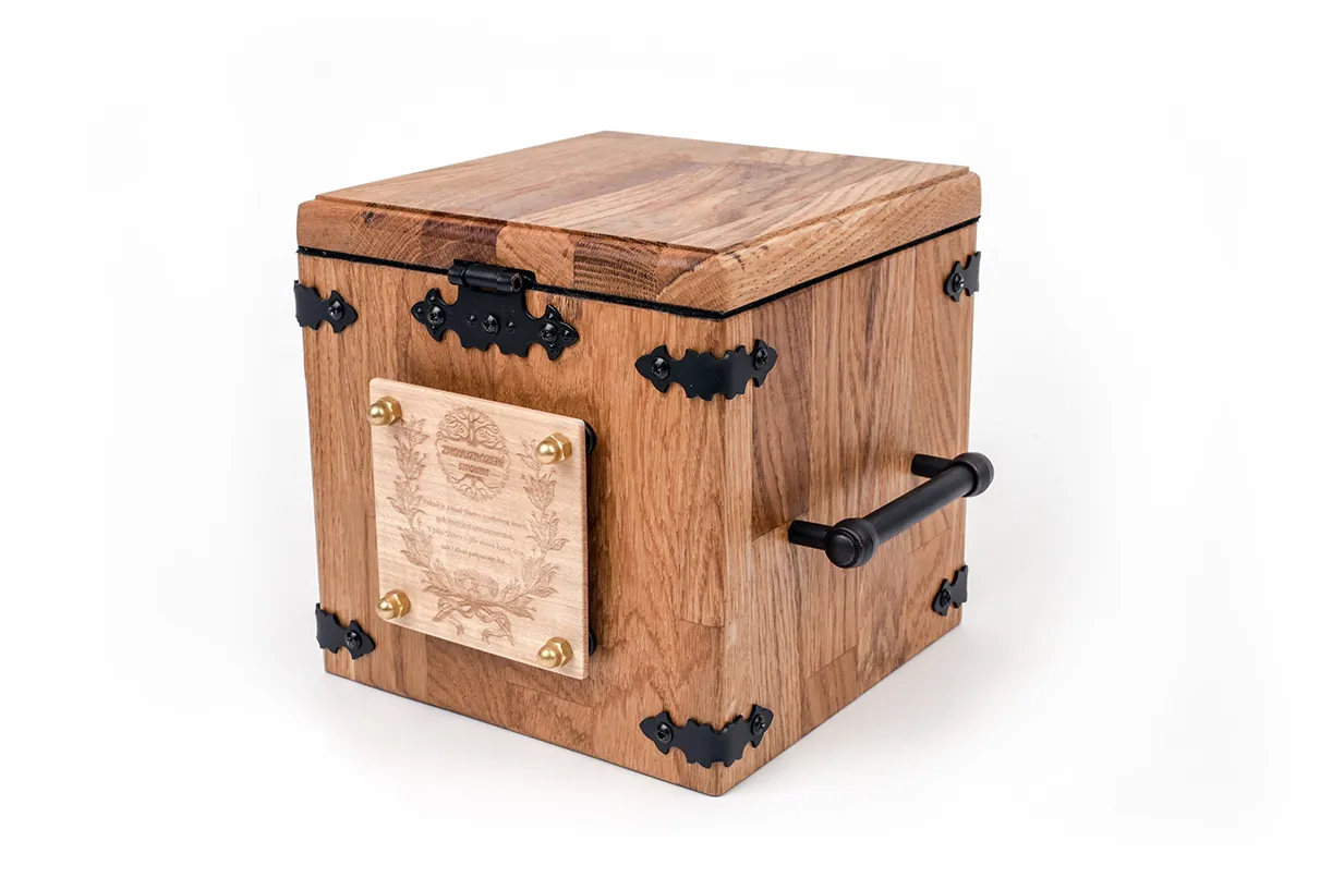 Destička na čele urny má vygravírované jméno a data narození a úmrtí. Urnu ručně vyrábí truhláři z kvalitního dubového dřeva, proto jsou důstojný vzhled i životnost zaručeny.